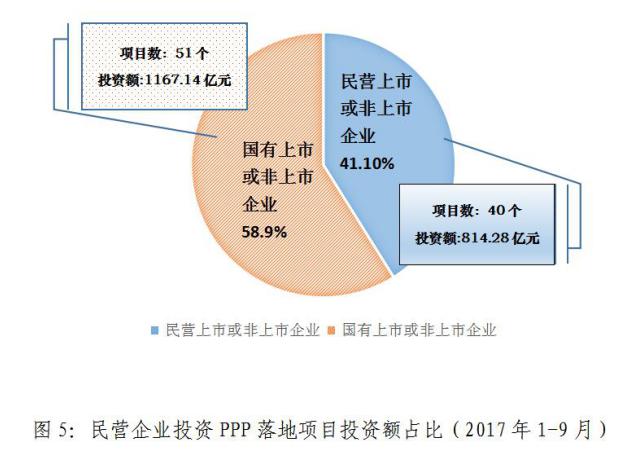 2017年9月,民營企業(yè)以聯合體牽頭方或者單獨作為社會資本方落地項目6個。2017年1-9月累計落地項目40個,占43.96%。