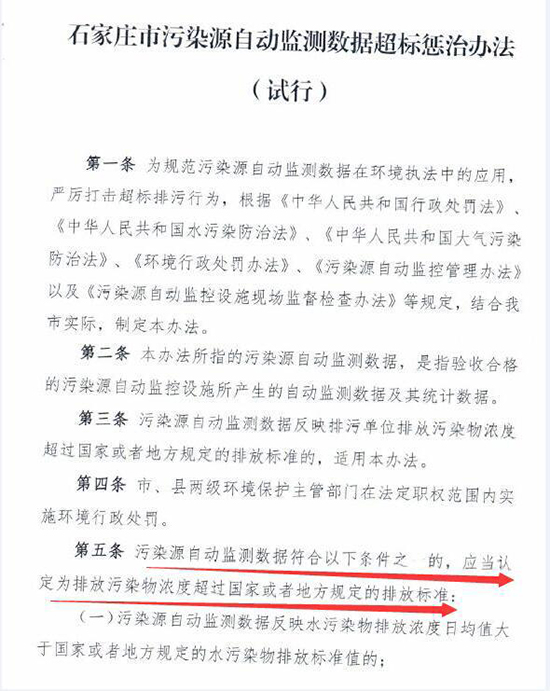 近日河北石家莊市環(huán)保局印發(fā)《石家莊市污染源自動監(jiān)測數(shù)據(jù)超標(biāo)懲治辦法(試行)》(以下簡稱“辦法”)。辦法明確,企業(yè)污染源自動監(jiān)測數(shù)據(jù)出現(xiàn)超標(biāo)將被處罰,超標(biāo)4次及以上,將停產(chǎn)整治。辦法自11月1日起施行。