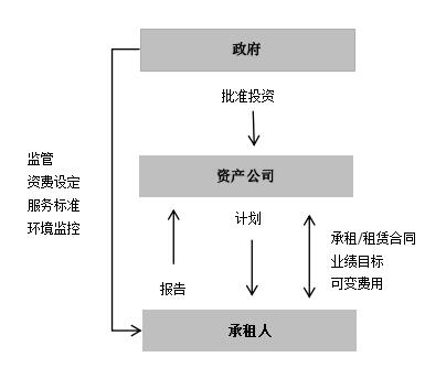 在租賃合同模式下,社會資本負責提供全部服務,并承擔滿足有關(guān)質(zhì)量和服務標準的義務。除了新的投資和重置投資出政府負責外,運營商提供服務并自負費用和風險。租賃合同的期限一般是10年,續(xù)期可長達20年。服務的提供者由政府變更為社會資本,運營和維護的財務風險全部由社會資本運營商承擔,特別是運營商承擔虧損及消費者的未償債務。