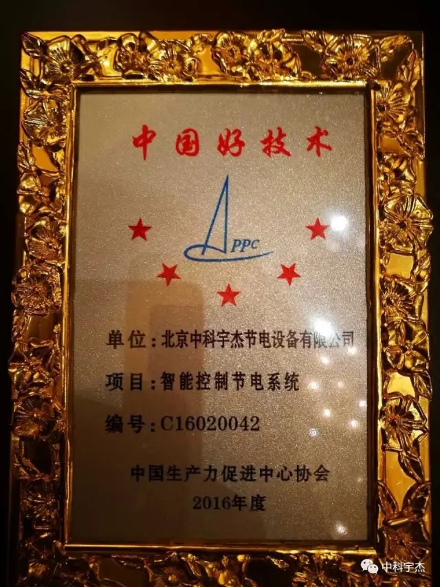 熱烈祝賀“中科宇杰智能控制節(jié)電系統(tǒng)”榮獲2016年度中國好技術殊榮