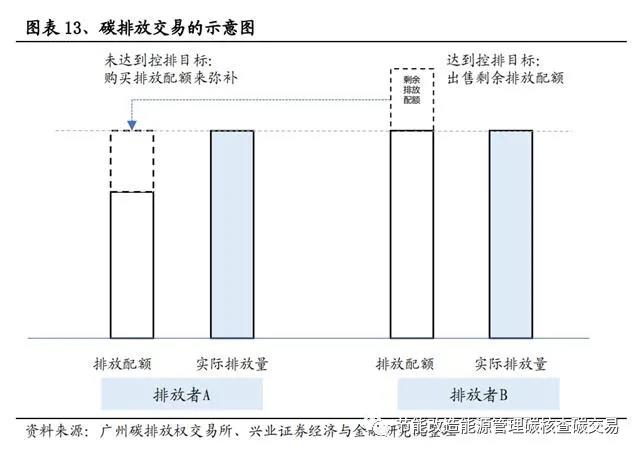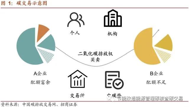 碳交易市場是由政府通過對能耗企業(yè)的控制排放而人為制造的市場。通常情況下,政府確定一個碳排放總額,并根據(jù)一定規(guī)則將碳排放配額分配至企業(yè)。如果未來企業(yè)排放高于配額,需要到市場上購買配額。與此同時,部分企業(yè)通過采用節(jié)能減排技術,最終碳排放低于其獲得的配額,則可以通過碳交易市場出售多余配額。雙方一般通過碳排放交易所進行交易。