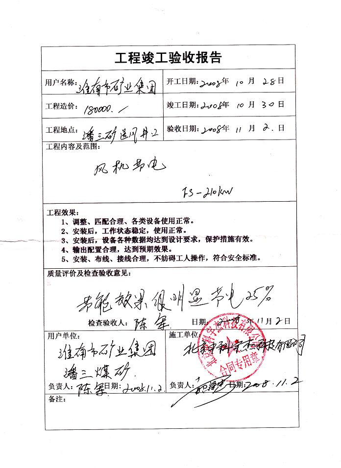 淮南礦業(yè)集團(tuán)從1903年淮南煤礦開礦起,已歷盡百年滄桑。2002年以來,企業(yè)抓住天時(shí)、地利、人和的歷史發(fā)展機(jī)遇,鑄就了新的輝煌,成為全國14個(gè)億噸級(jí)煤炭生產(chǎn)基地、6個(gè)煤電一體化基地之一,是我國黃河以南最大的新型能源企業(yè)。2010年,位居中國企業(yè)500強(qiáng)第183位,煤炭、電力、房地產(chǎn)三大主業(yè)規(guī)模居安徽省首位。淮南集團(tuán)對(duì)節(jié)能降耗非常重視,不但加強(qiáng)生產(chǎn)用電管理,增強(qiáng)職工的節(jié)電意識(shí),深挖內(nèi)部節(jié)約潛力,降低電力成本,最大限度的降低電能消耗,還重視主動(dòng)尋求節(jié)能改造的先進(jìn)技術(shù),與中科宇杰一起于2008年進(jìn)行了節(jié)能項(xiàng)目合作。